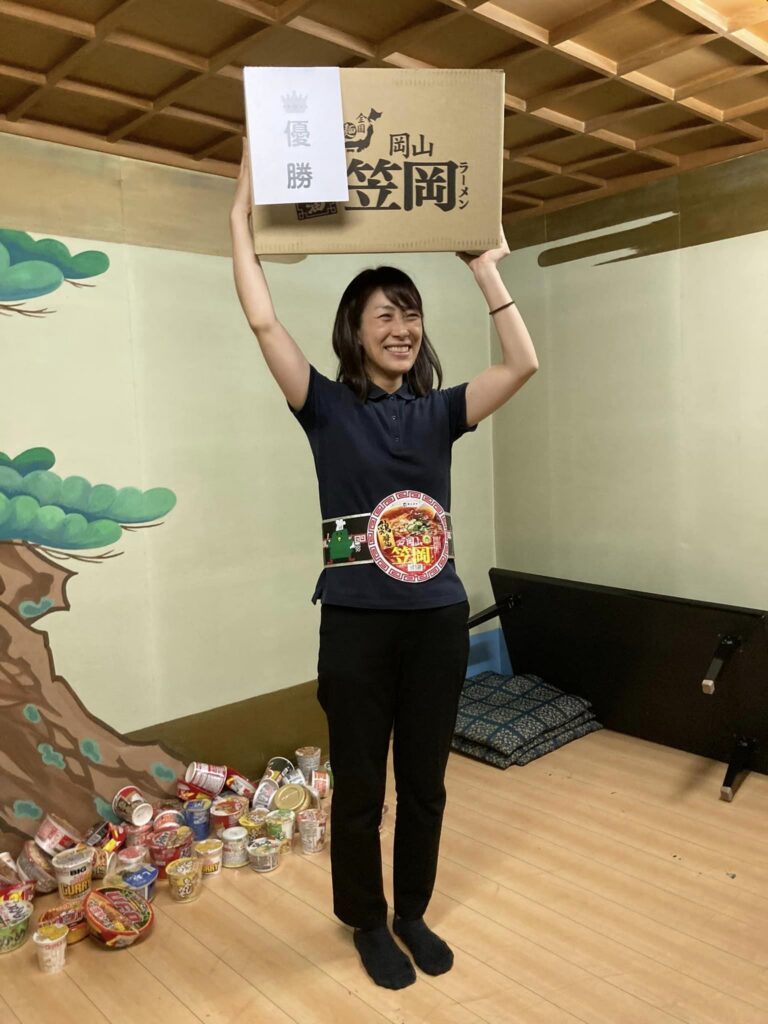 笠岡ラーメンプロジェクト委員会の皆さんの素晴らしいおもてなしで、カップラーメン積みゲーム大会もあって、大いに盛り上がりました!